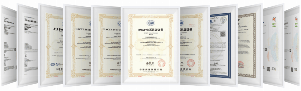 在食品安全领域,新禾食品以严苛标准构建全产业链保障体系,先后斩获ISO 9001、HACCP、BRC(英国零售商协会最高等级)、美国FDA注册、犹太洁食KOSHER、IFRC清真等多项全球顶级认证。从番茄种植到加工、生产、包装、运输,全流程可追溯,360°无死角监控,确保每瓶番茄酱经得起全球最严苛市场检验,从源头把控食品安全。